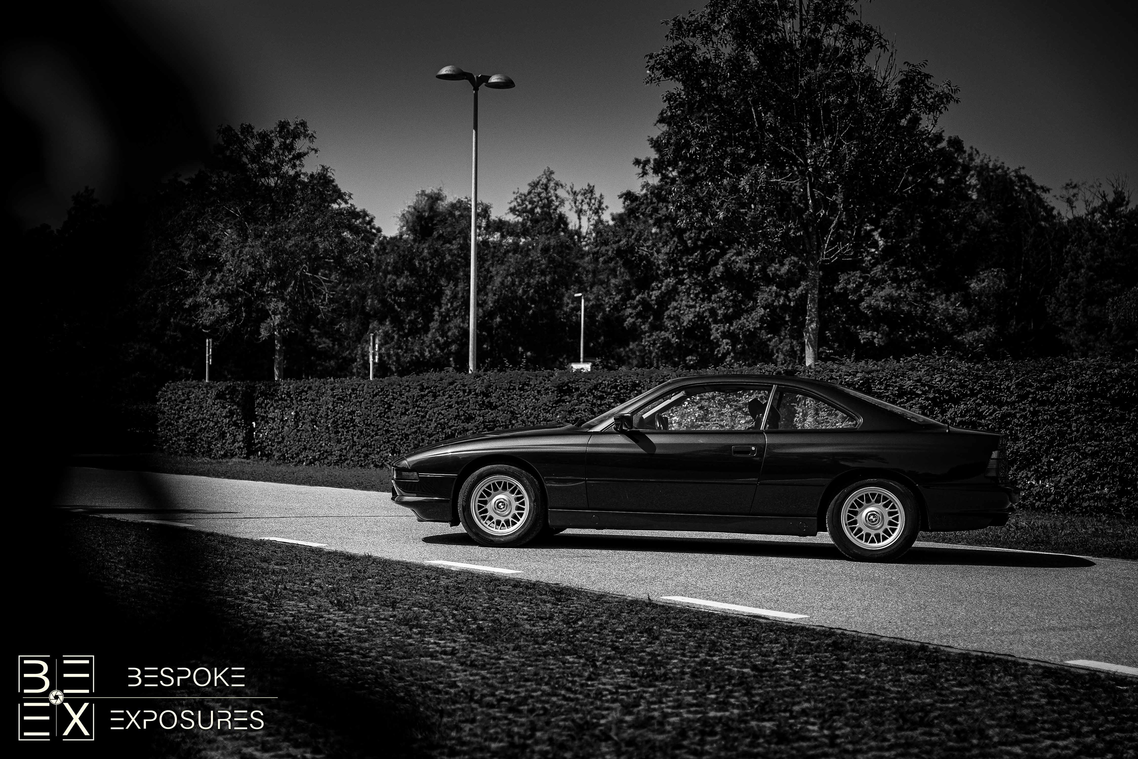 So fand ich an dem ersten Ort, einer kleinen Straße mitten im Wald, fest, dass der fehlende Abstand zum Auto für mich zu nicht idealen Ergebnissen führte. Außerdem waren die Unterschiede der schattigen und mit Tageslicht erleuchteten Bereiche viel zu groß. So wurde nach kurzer Zeit Platz gewechselt zu einem Anlieferweg zum Kloster Fürstenfeld. Das Problem hier waren die super hell reflektierenden Wände, womit Reflexionen nicht vermeidbar waren. Dies resultierte in nur einem Winkel von 60° zum Hintergrund mit guten Ergebnissen. An der letzten Location, dem Parkplatz des Klosters, hatte ich endlich den benötigten Platz, aber die nicht durch Wolken verdeckte Sonne sorgte trotzdem für extrem harte Schatten.