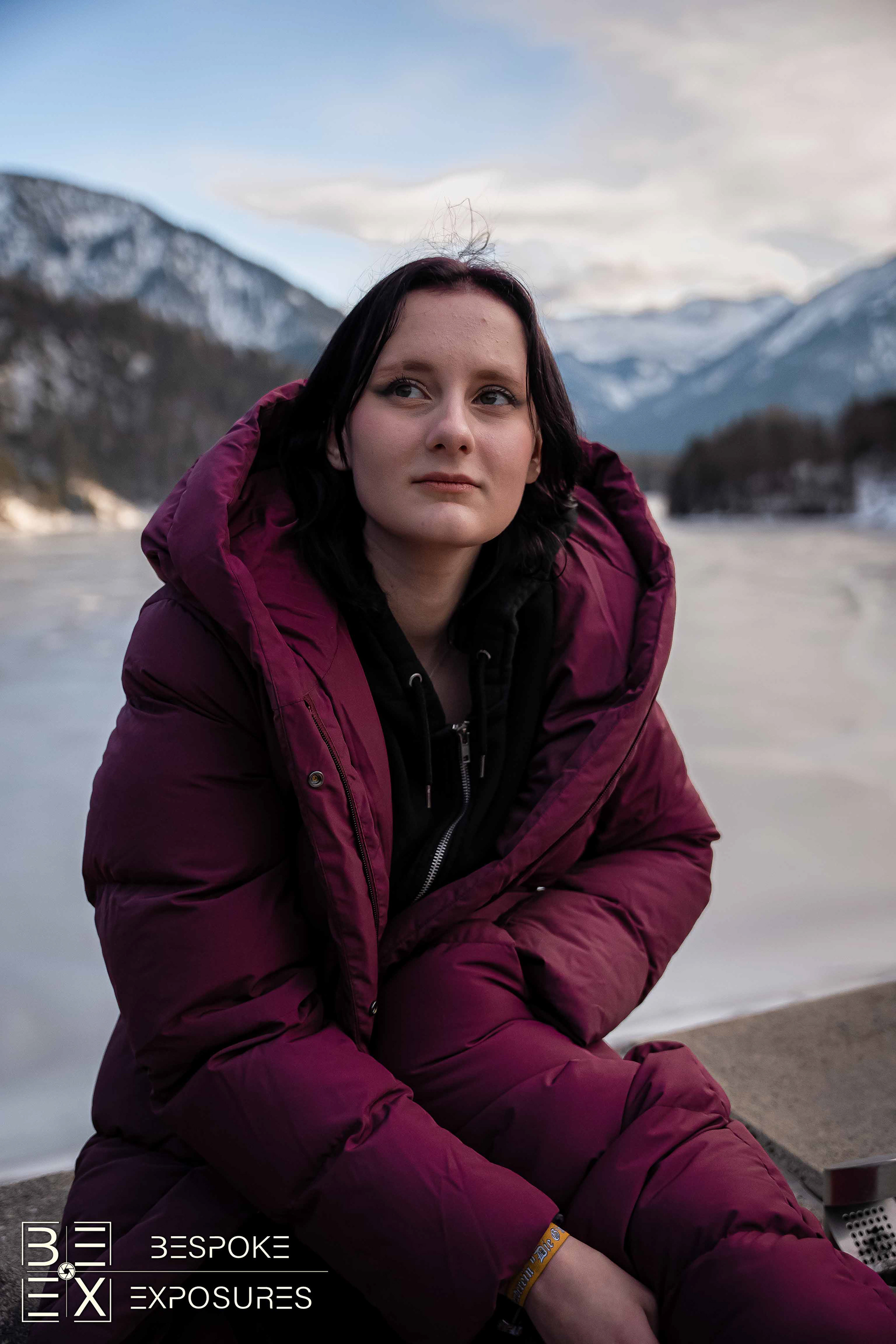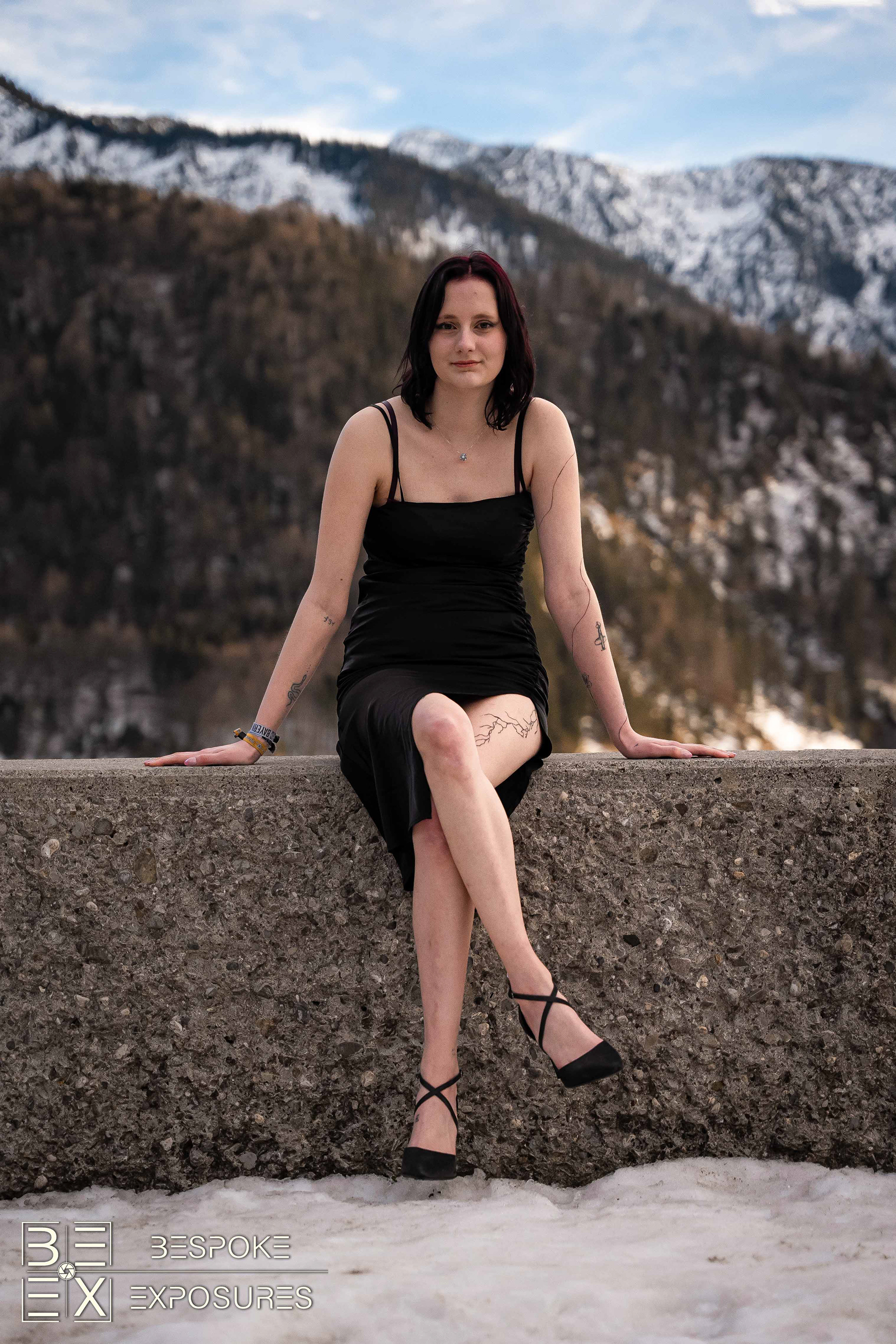 Angekommen an unserem Ziel sind wir circa eine Stunde vor Sonnenuntergang, genug Zeit und Licht, um viele Fotos aufzunehmen, unter anderem von Sonic. Sie warf sich für diesen Termin in Schale und zeigte ihre stetig wachsende Sammlung an Tattoos mit einem hautengen, schwarzen Kleid und extra gefärbten Haaren, zumindest bis die kalten Temperaturen siezurück in die Wärme des Autos mit einem warmen Tee zwang.